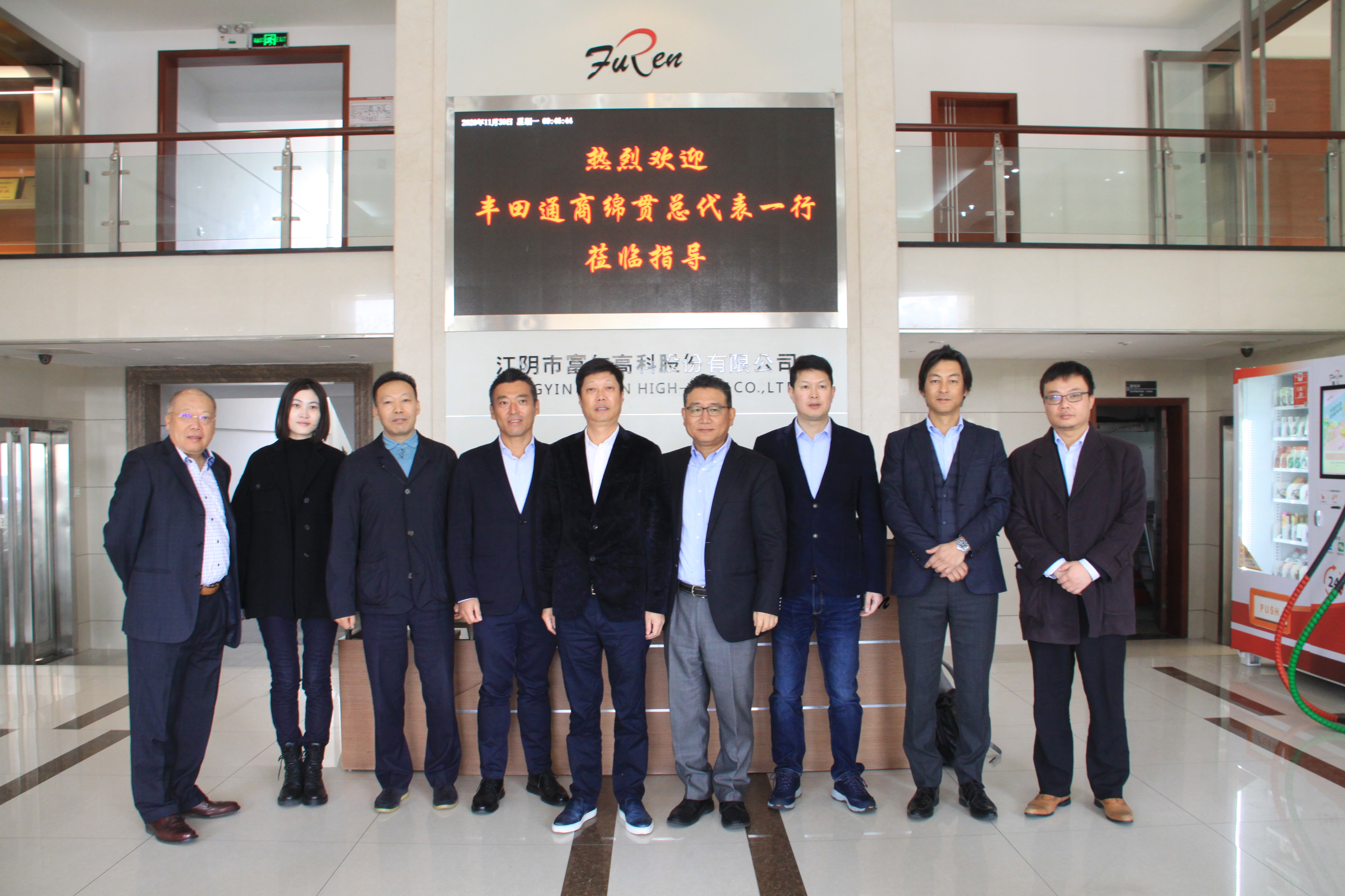 11月30日,,,,,,,在丰田通商(中国)董事长绵贯辰哉先生的带领下,,,,,,,丰田通商(广州)总经理牧野雄次、丰田通商(广州)副总经理赵赤阳、丰田通商(上海)SUB长胜本浩史、丰田通商(上海)王卓彦一行莅临suncitygroup集团参观考察,,,,,,,suncitygroup集团董事长袁仁伟全程陪同此次考察活动。。。。。